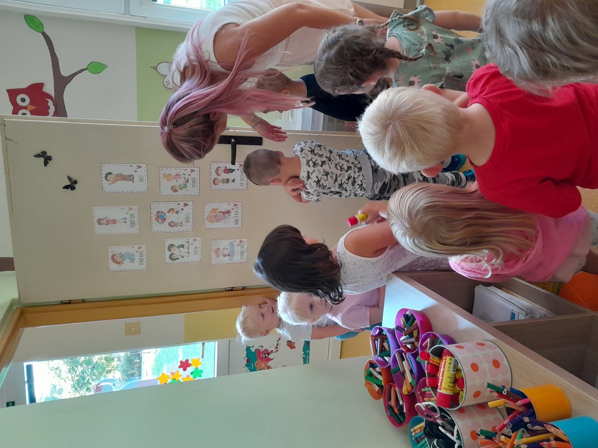 - Celý týden si povídáme pravidlech třídy a také o správném chování ve školce. Známe kouzelná slovíčka."